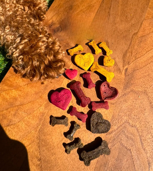 🌿 Da wir komplett auf künstliche Farb- und Konservierungsstoffe verzichten, kann es bei unseren Leckerlis zu leichten Abweichungen in Farbe, Form oder Geruch kommen. Das ist ein Zeichen für echte Naturqualität.