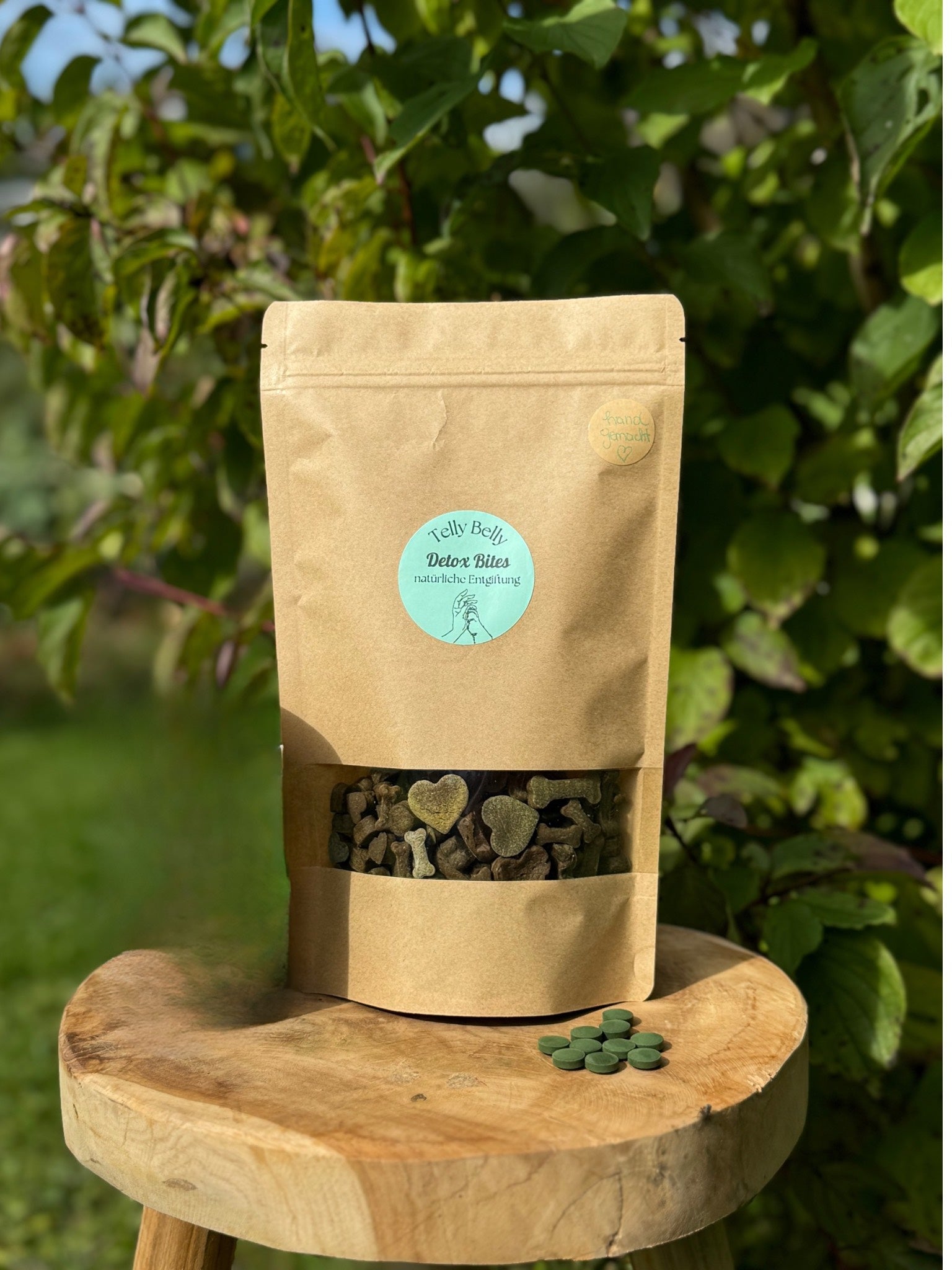 Unsere "Detox Bites" sind frei von künstlichen Zusätzen, in Lebensmittelqualität hergestellt und somit auch für ernährungssensible Hunde gut geeignet.